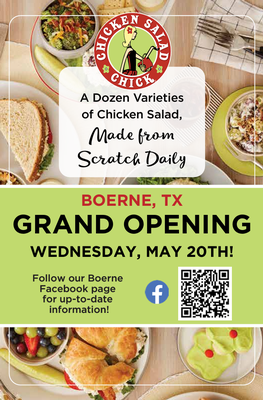 Chicken Salad Chick is bringing a fresh and flavorful twist to Boerne, serving up a crave-worthy variety of homemade chicken salads, delicious sides, and sweet treats. Known for its Southern charm and welcoming atmosphere, this fast-casual favorite offers everything from classic recipes to bold, unique flavors.  Whether guests are stopping in for a quick lunch or gathering with friends, Chicken Salad Chick delivers a fun, feel-good dining experience that’s sure to become a local favorite.